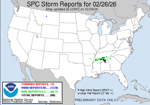 Severe Thunderstorm Reports from Thursday February 26