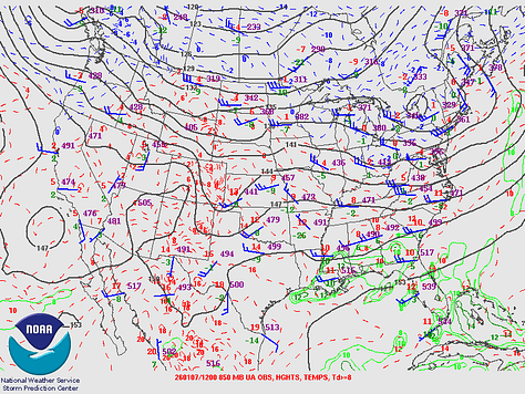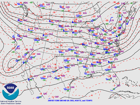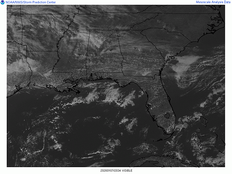 We’ve had some fog this morning, and some of it is hanging around in Northwest Alabama; where you see that stuff that looks like clouds sitting still while the other stuff moves . . . that’s fog. Our upper-level winds are pretty much zonal at this point, and we’ve got a weak front trying to push its way through the region today.