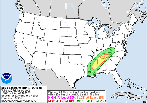 Rainfall totals may average in the 2-4 inch range for this forecast period, and there is a slight risk of some flooding issues for our area between Friday and Saturday.