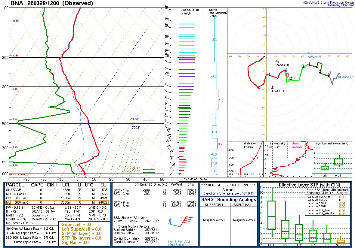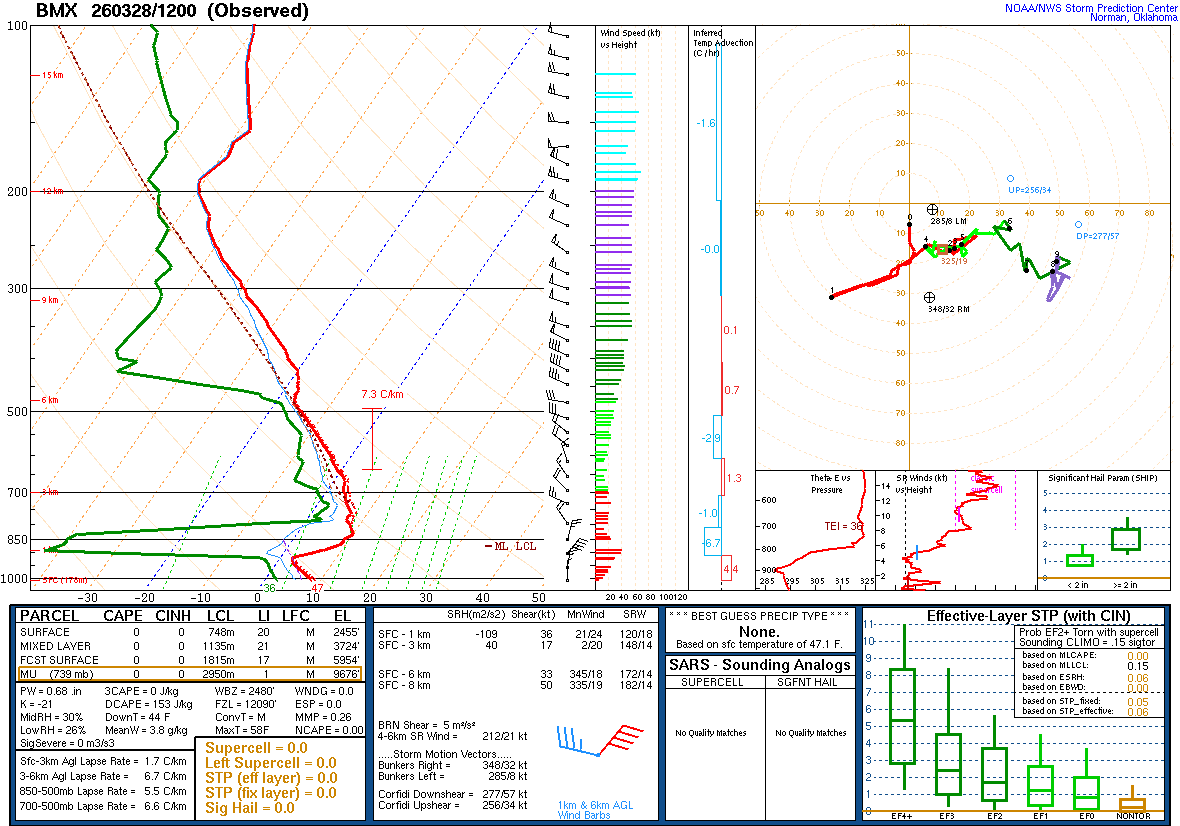 And right here as we’re getting into the peak of our severe weather season, we’ve lucked out at the moment, because this morning’s soundings from Birmingham and Nashville both showed a very stable airmass and no wind shear worth worrying about as far as feeding into any storms. Today is obviously the opposite of a stormy day, and yesterday was kind of strange for late March. To have a cold front come through this time of year with no chance for storms is fortunate indeed.
