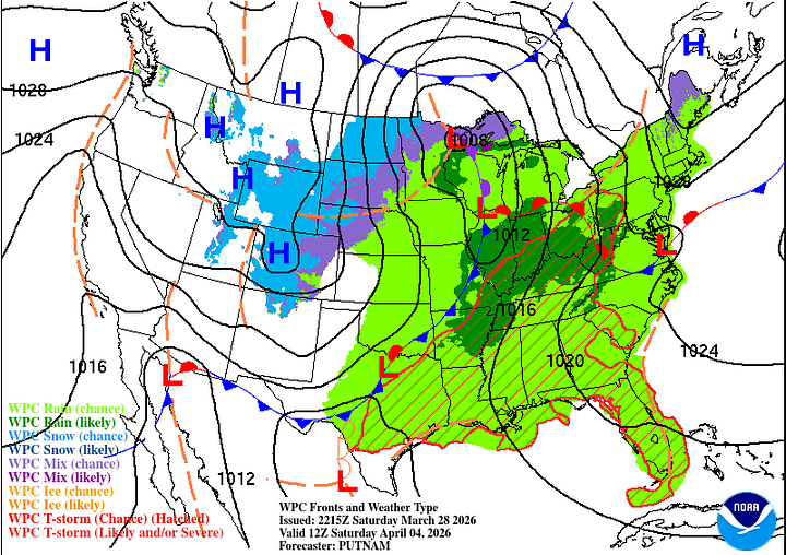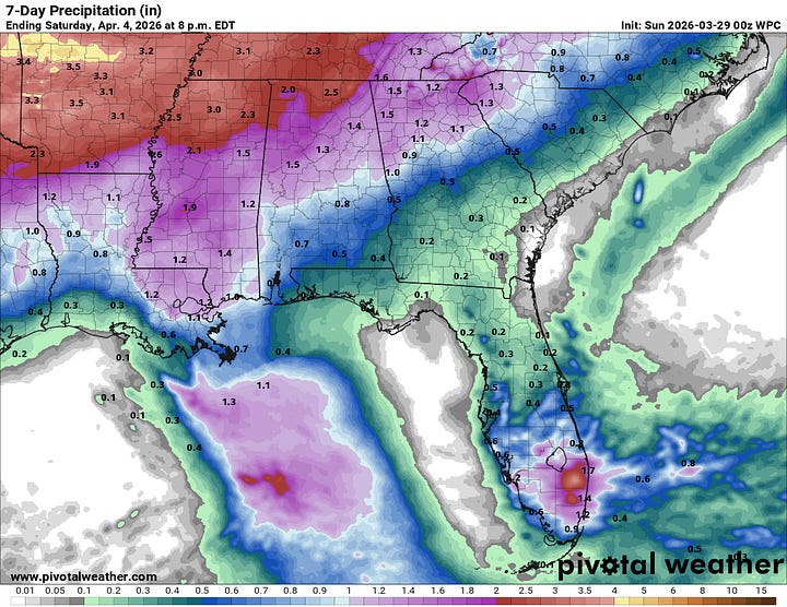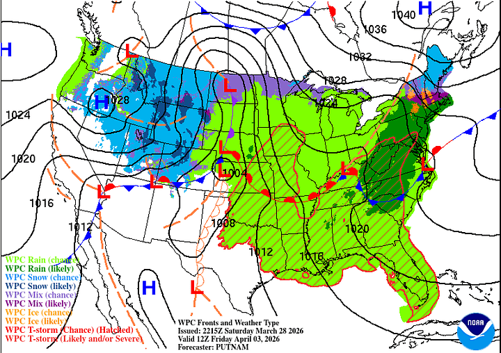 The Storm Prediction Center has not outlooked any part of our region for severe thunderstorms, and nothing jumps out as a clear signal of any risk like that, despite the time of year it is. You always have to keep an eye on things this time of year, but overall this just looks like a soaker over several days’ time.