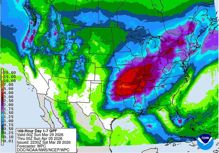 And the rainfall estimates have come up quite a bit from the Weather Prediction Center. We could see anywhere from 1.5-2.5 inches of average rainfall over the next seven days in North Alabama and Southern Middle Tennessee. And we do need the rain. Not every weather forecast has to be laden with great drama. Sometimes it comes back to basics. Like the old saying: April showers bring May flowers.